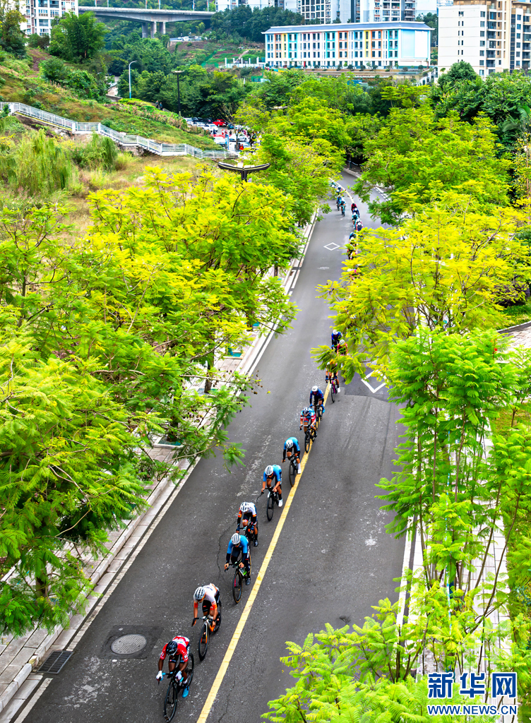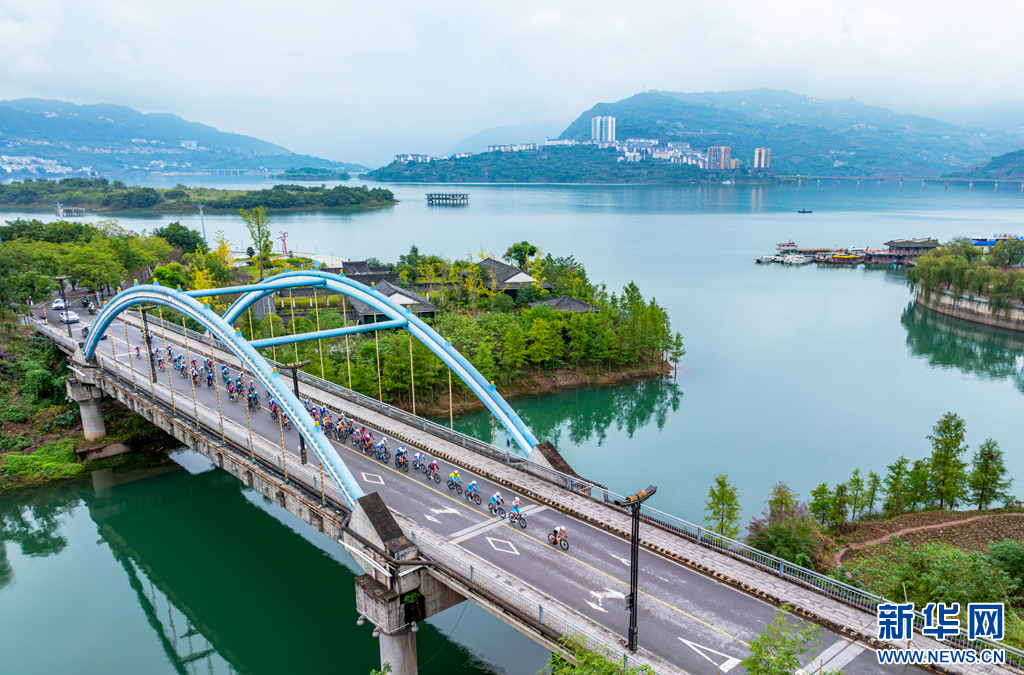 2024環(huán)昭通國際公路自行車賽(綏江—水富賽段)比賽現(xiàn)場(chǎng)(11月8日攝)。新華網(wǎng)發(fā)(曾三東 攝)