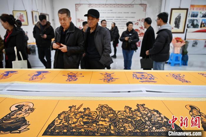 11月19日,“蘭州剪紙”非遺傳承人李自新、李麟桐剪紙藝術(shù)展在甘肅省蘭州市開幕,展出以敦煌壁畫、隴上風(fēng)物等為題材,精心創(chuàng)作的剪紙作品。圖為展出的剪紙作品。中新社記者 九美旦增 攝