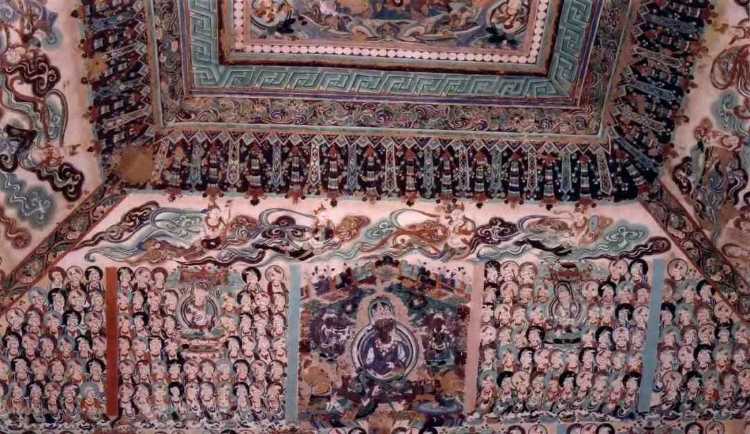 莫高窟的重修洞窟有50多個(gè),重修時(shí)一般要重繪壁畫,這就產(chǎn)生了重層壁畫。其中,第220窟重層壁畫非常具有代表性。第220窟是唐初敦煌大族翟氏家族的翟通修建的家族窟,經(jīng)過翟氏家族世代維護(hù),到了五代時(shí)期,翟奉達(dá)進(jìn)行了重修。宋代時(shí)期,整個(gè)洞窟又被重修繪制。其中重層壁畫就是一個(gè)非常典型的代表。莫高窟洞窟壁畫有的兩層、三層,甚至四層?,F(xiàn)在莫高窟的壁畫是45000平方米,如果將所有重層壁畫分離開來,那就不止45000平方米了。所以我就萌生了分離重層壁畫的想法。