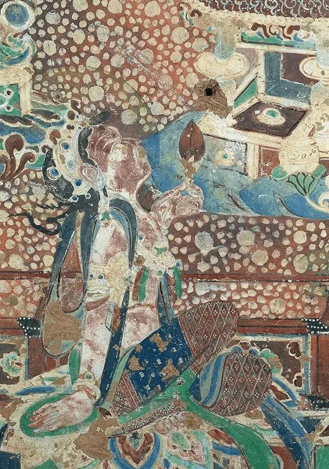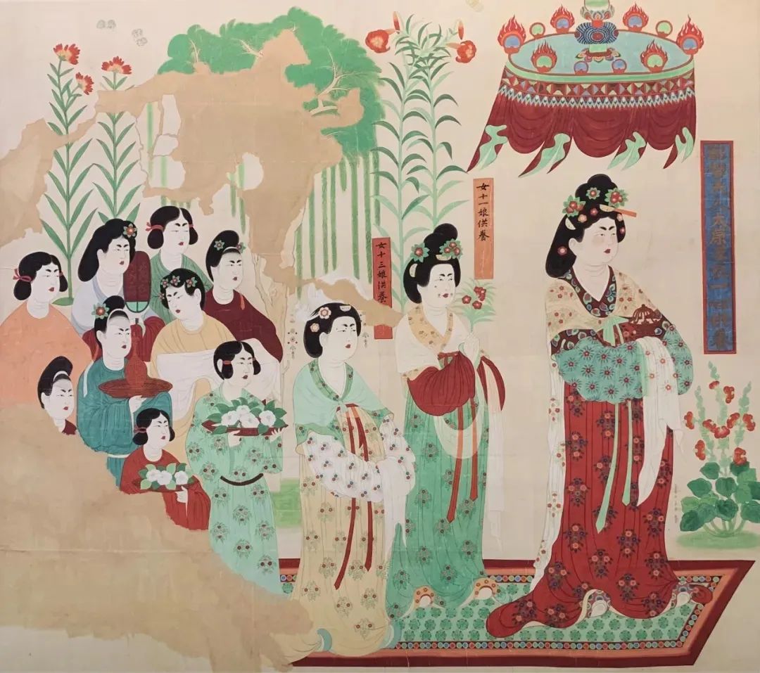 ?。?)莫高窟第130窟飛天壁畫修復(fù)當(dāng)我在第161窟修復(fù)壁畫時(shí),突然聽到洞窟外一聲巨響,我猜想,應(yīng)該是洞窟發(fā)生了坍塌。于是我趕緊循聲而去,發(fā)現(xiàn)發(fā)出巨大聲響的是第130窟,第130窟北壁上部壁畫為飛天,其中空鼓壁畫大面積脫落,有2平方米多。脫落的壁畫掉在了佛腳上,碎成了一地。未脫落壁畫的邊緣十幾厘米都已脫離墻壁,隨時(shí)有脫落的風(fēng)險(xiǎn)。我于是向常書鴻先生匯報(bào),然后我們上報(bào)國(guó)家文化部。國(guó)家文化部批示,對(duì)第130窟進(jìn)行加固維修。
