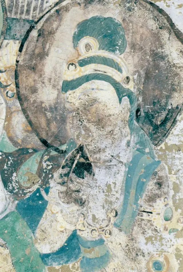 當(dāng)打開第161窟窟門時(shí),空氣流動(dòng),壁畫像碎片雪花一樣紛紛揚(yáng)揚(yáng)掉落下來??粗袈涞谋诋?,我的心如刀絞,于是開始探索修壁畫的方法。我先在小范圍內(nèi)做試驗(yàn),在修復(fù)材料、材料比例、工藝等方面各都要進(jìn)行試驗(yàn),試驗(yàn)完成后才開始大面積修復(fù)壁畫。修復(fù)壁畫如醫(yī)生操作手術(shù)一樣,需要耐心、精細(xì)入微,一絲不茍。我每天就在洞窟里拿著注射器,重復(fù)著表面除塵、注射黏結(jié)劑(需三次,三次之間的時(shí)間要合理安排)、回貼、膠滾滾壓等工序,每道工序都不能打折扣或者減少。每天我大概只能修復(fù)0.1平方米,所以60多平方米的壁畫,我修復(fù)完成用了3年,第161窟壁畫終于重獲新生。第161窟是我首個(gè)獨(dú)立修復(fù)的洞窟,也是莫高窟第一個(gè)起甲病害整窟修復(fù)的洞窟。