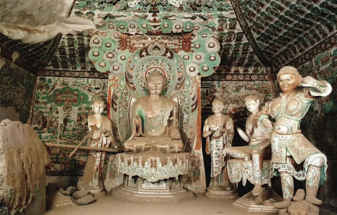 搬遷復(fù)原的洞窟內(nèi),不但保持了原來壁畫和塑像的原貌,洞窟內(nèi)的其他部位,如坍塌壁面也與洞窟原貌基本相同。從南湖店搬來的新建洞窟是磚混結(jié)構(gòu)的洞窟,我們對(duì)洞窟外墻面用礫石進(jìn)行裝飾,這樣洞窟與周邊崖壁、洞窟相一致。這兩個(gè)洞窟被安置在莫高窟北區(qū)大沖溝中,既不破壞和影響原有洞窟,又使其與周邊崖面和洞窟融為一體。如果不被提醒,人們?nèi)菀渍`認(rèn)為它們就是古代所建造的洞窟。