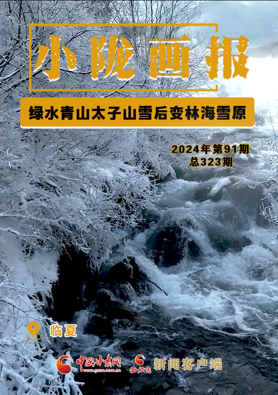 云霧繚繞中,太子山主峰巍峨壯觀,翠色與白雪交織,綿延起伏的山巒溝壑被銀裝緊緊包裹,閃爍著迷人的光芒。