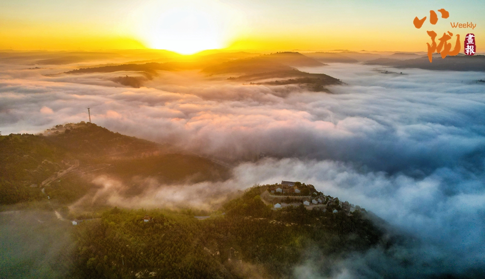 連綿起伏的山巒在云霧中若隱若現(xiàn),霧氣彌漫將溝峁山梁籠罩,形成一幅水墨風(fēng)光畫(huà)。