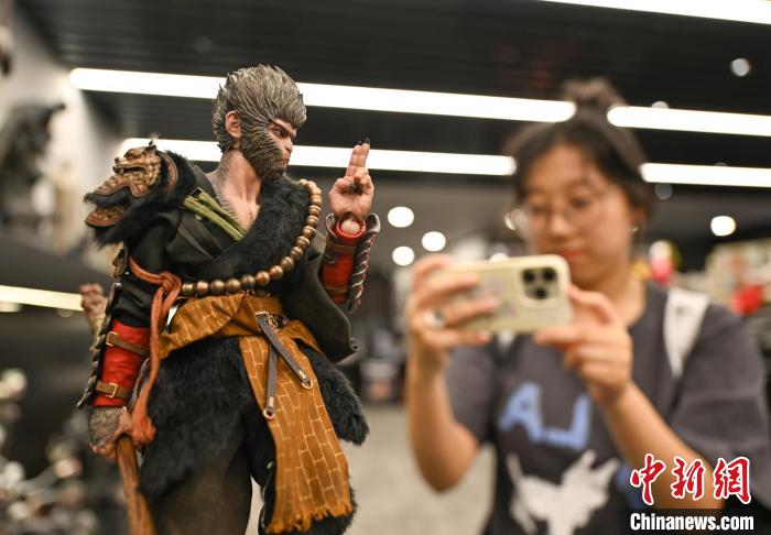 8月23日,《黑神話:悟空》人偶手辦生產企業(yè)內,展出的“天命人”吸引參觀者。王剛 攝