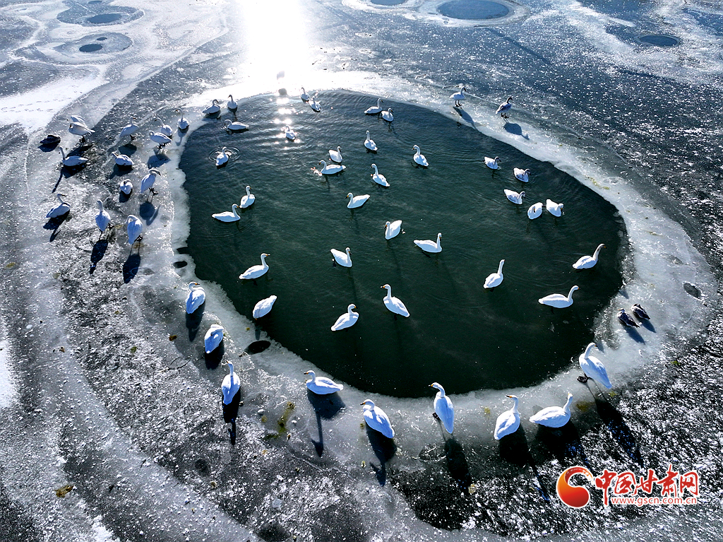 近日,在甘肅省張掖國(guó)家濕地公園,成群的越冬天鵝在冰封的湖面上悠然覓食、嬉戲,構(gòu)成了一幅動(dòng)人的生態(tài)畫(huà)卷,成為冬日里一道尤為引人注目的風(fēng)景線。