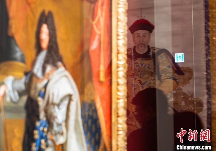 2月19日,正在香港故宮文化博物館持續(xù)展出的“當紫禁城遇上凡爾賽宮——十七、十八世紀中法文化交流”展部分珍品煥新亮相,《康熙帝戎裝像》《龐巴杜夫人像》等約20件故宮博物院、法國凡爾賽宮的珍貴展品與公眾見面,繼續(xù)“講述”中法文化之交。圖為展廳玻璃映襯的故宮博物院藏《雍正帝朝服像》(右)和法國《路易十四肖像》。中新網(wǎng)記者 侯宇 攝