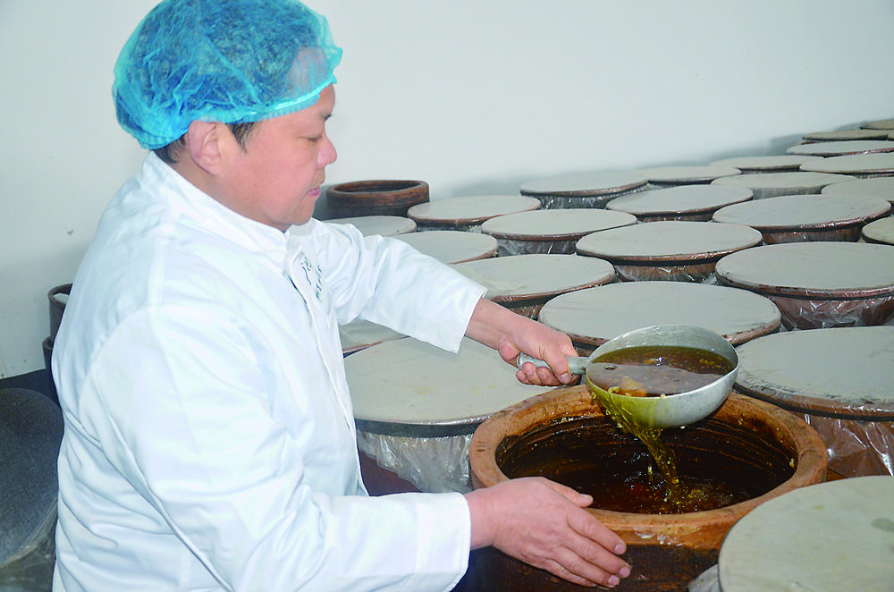 在長期的釀造過程中,河州黃酒有一套獨(dú)特的傳授規(guī)程和技術(shù)要求,甚至有“傳媳不傳女”的風(fēng)俗。釀酒過程復(fù)雜且耗時(shí),尤其是對(duì)溫度、火候的把控,需要豐富的經(jīng)驗(yàn)。王建平從小在父親的帶領(lǐng)下傳承老輩人釀酒技藝,逐漸掌握整套釀造工藝流程,在父輩生產(chǎn)和經(jīng)營的基礎(chǔ)上,繼續(xù)探索創(chuàng)新,綜合各地黃酒優(yōu)點(diǎn),取長補(bǔ)短,突出河州黃酒醇厚的風(fēng)格,不斷豐富產(chǎn)品系列。為將自己的技藝傳承下去,他讓兒子王騰和幾名徒弟學(xué)習(xí),做接班人,傳承釀造技藝。