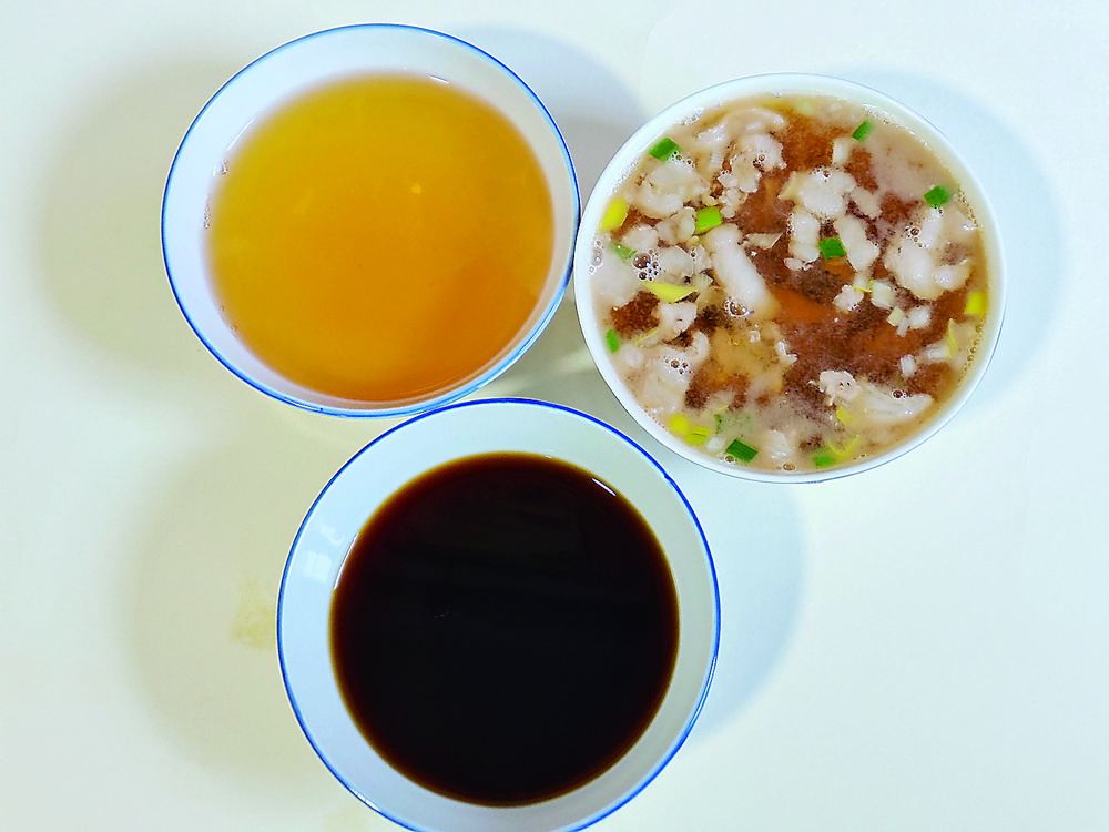 一碗肉酒上桌,羊肉味與黃酒交融后醇香入鼻、垂涎欲滴,品嘗一口便夸贊連連。細(xì)嫩的羊肉片、甜洌的黃酒,吃肉不膩,喝酒鮮甜清香,散溢在味蕾,唇齒留香。