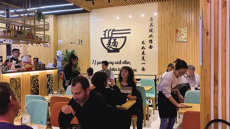 留學(xué)生吳恒芝和朋友品嘗蘭州牛肉拉面