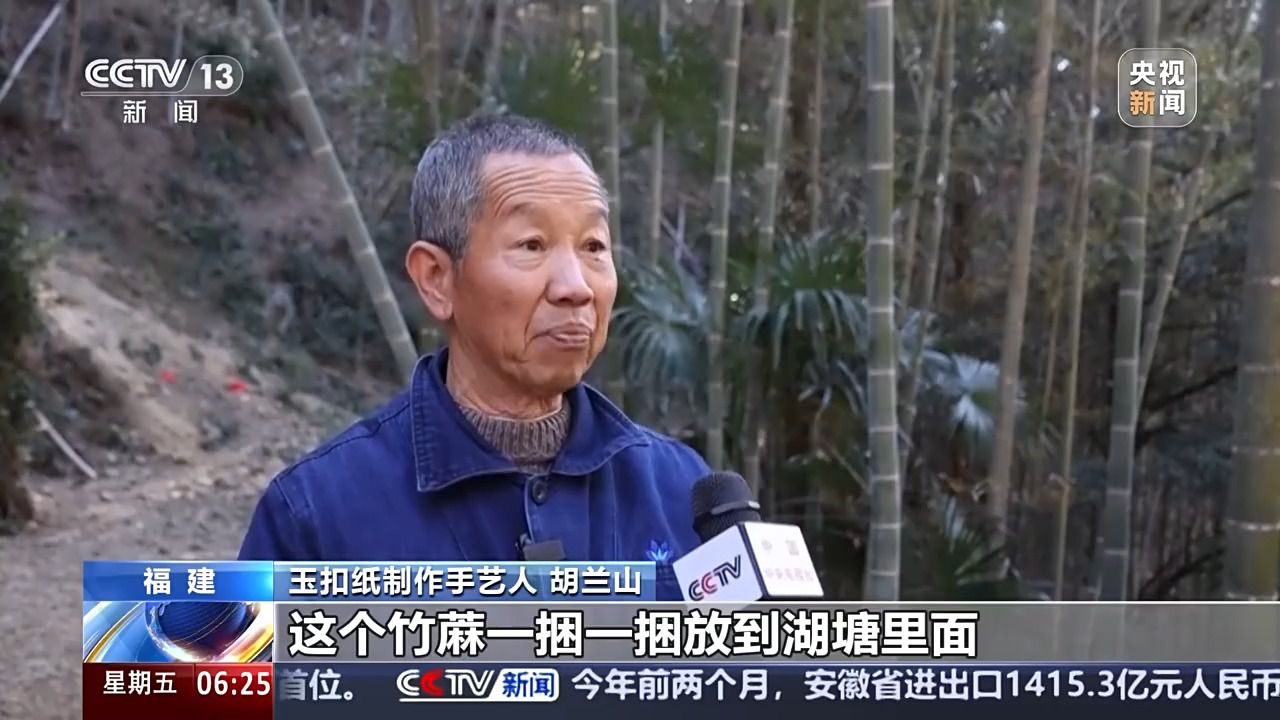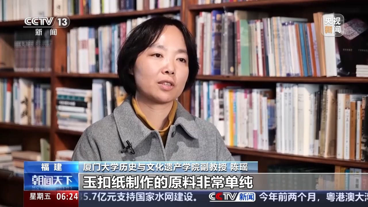 廈門大學(xué)歷史與文化遺產(chǎn)學(xué)院副教授 陳瑤:玉扣紙制作的原料非常單純。就是三種,一個是竹子嫩竹,第二個是石灰,第三個就是清潔的山泉水。基本上是純靠人工來進行品質(zhì)的管控。