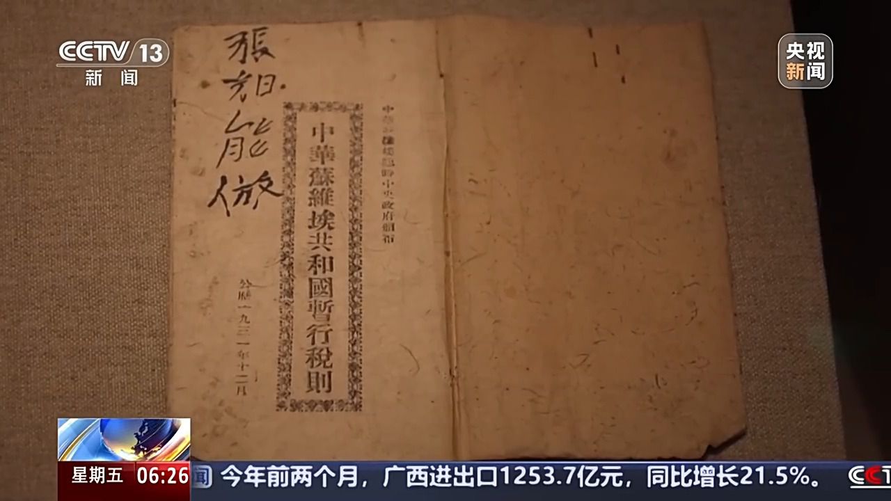 寧化縣革命紀念館講解員 邱小紅:《中華蘇維埃共和國暫行稅則》是赤色中國的第一部稅法,我館所展示的這本保存完整。它的封面采用的就是寧化玉扣紙。