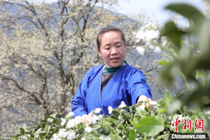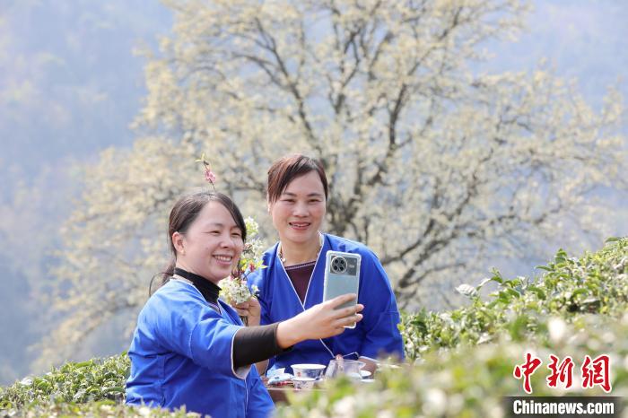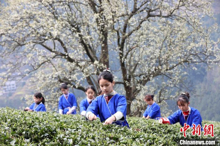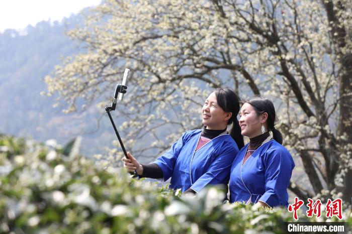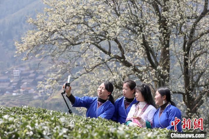 3月16日,廣西三江侗族自治縣八江鎮(zhèn)歸令村六更屯種植的千樹梨花迎春綻放,與青翠茶園、特色民居相映成趣,構(gòu)成一幅如詩(shī)如畫的春日畫卷。當(dāng)?shù)卮迕窦坝慰图娂娗皝聿刹栀p花、“打卡”拍照,享受春日美好時(shí)光。圖為村民在采春茶。龔普康 攝