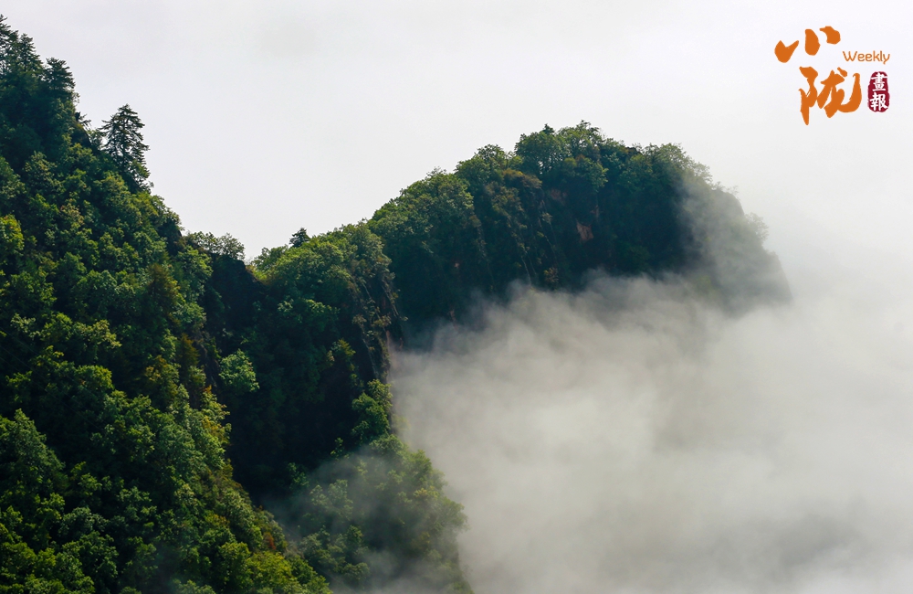 最高峰被云霧包圍著,云海展現(xiàn)出時而翻滾如波濤、時而柔美如輕煙的多樣形態(tài)。這種無窮的變幻,讓山在云霧繚繞中若隱若現(xiàn),似人間仙境。這番景象,渲染出一種朦朧而神秘的美感,激發(fā)人們無盡的遐想。