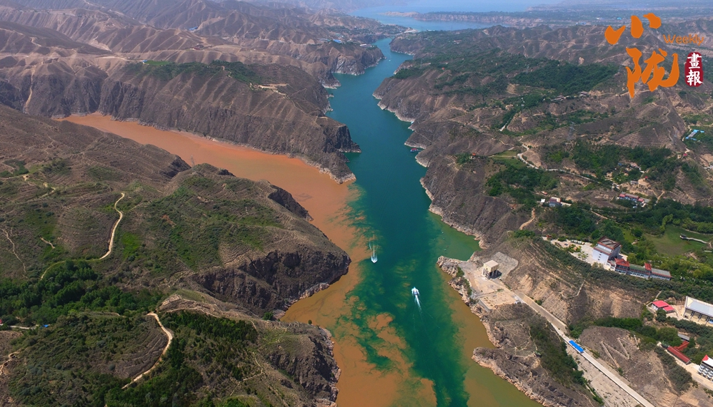 在劉家峽大壩附近,黃河、洮河以“Y”字形在龍匯山前交匯,它們輕盈碰撞,一清一濁、一藍一黃,形成了“涇渭分明”的界線,這便是著名的“黃洮交匯”奇觀。黃河從青藏高原奔流而下,上游地區(qū)植被覆蓋率高,水土侵蝕相對較弱,在這片水域,黃河平靜安寧,色藍清澈。洮河是黃河水系的重要支流,流經(jīng)碌曲、臨潭、臨洮等縣,流經(jīng)黃土高原西緣,河水?dāng)y帶大量泥沙,所以當(dāng)洮河跟黃河一交匯的時候,就會出現(xiàn)“黃河清,洮河黃”的神奇景象。