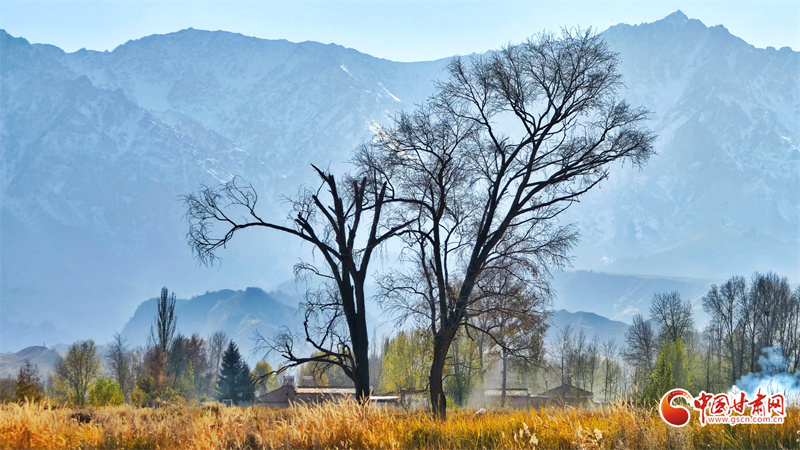 初冬時節(jié),張掖市民樂縣南古鎮(zhèn)柳谷村景色宜人。巍峨的祁連山脈連綿起伏,山腳下,萬畝良田阡陌縱橫,黃綠相間的樹木點綴其間,為大地暈染出豐富的色彩層次,盡顯祁連山下冬日的獨特韻味。