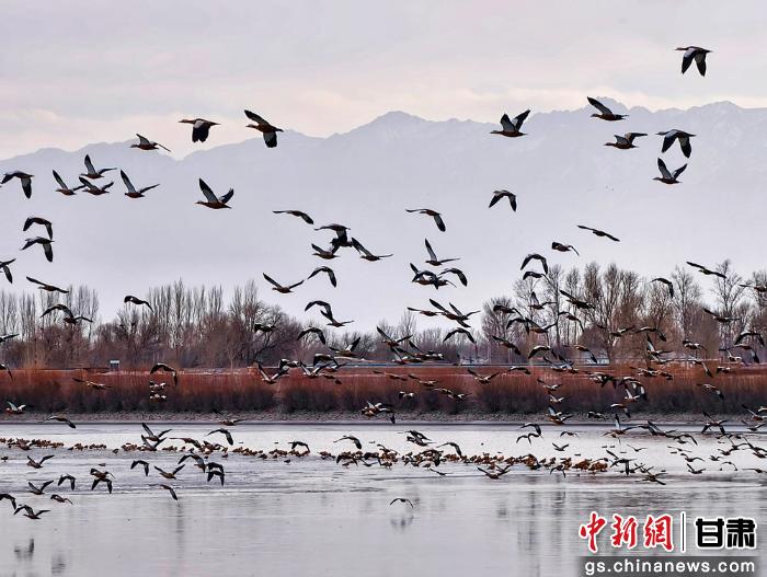 在黑河濕地國家級自然保護(hù)區(qū)高臺段,蜿蜒的河道與開闊的水面已成為候鳥的臨時家園。