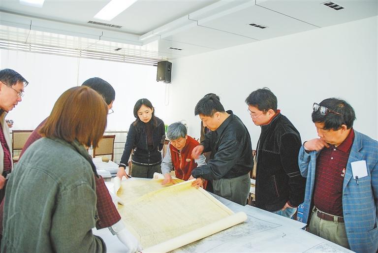 2007年,為石窟考古報(bào)告評(píng)議手工測(cè)繪圖。 本版圖片除署名外均由敦煌研究院提供