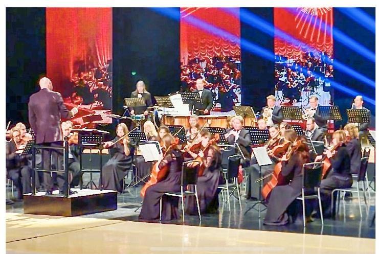 音樂(lè)會(huì)在《輕騎兵序曲》的激昂旋律中拉開(kāi)帷幕。隨后,柴可夫斯基芭蕾舞劇《天鵝湖》組曲、《胡桃?jiàn)A子》選段,以及歌劇《茶花女》中熱情洋溢的《祝酒歌》等經(jīng)典作品輪番奏響。樂(lè)團(tuán)演繹層層遞進(jìn),不斷將現(xiàn)場(chǎng)氣氛推向高潮,贏得觀眾陣陣掌聲。本場(chǎng)音樂(lè)會(huì)的獨(dú)特魅力,還體現(xiàn)在東西方音樂(lè)元素的交融。除西方經(jīng)典曲目外,樂(lè)團(tuán)還精彩演繹了《紅色娘子軍》選曲《快樂(lè)的女戰(zhàn)士》,以交響語(yǔ)言詮釋中國(guó)旋律的別樣風(fēng)采。當(dāng)電影《上甘嶺》插曲《我的祖國(guó)》響起,樂(lè)團(tuán)女高音歌唱家用中文傾情演唱,悠揚(yáng)深情的歌聲回蕩劇場(chǎng),打動(dòng)了在場(chǎng)的每一位觀眾。