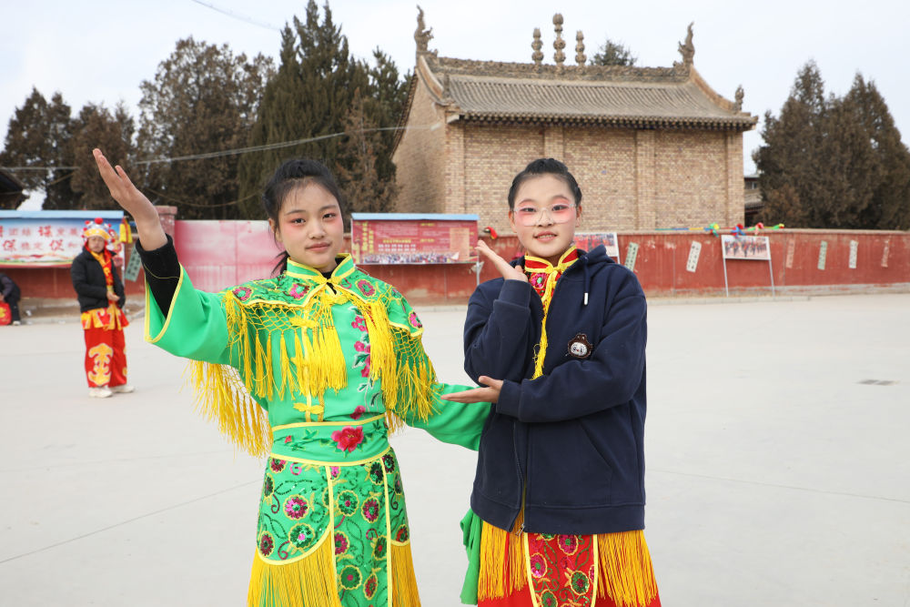 王欣怡、王欣語姐妹倆自小學(xué)習(xí)舞蹈,看著社火長大的她們已連續(xù)兩年參加當(dāng)?shù)厣缁鸨硌荨?ldquo;社火表演熱鬧有趣,就像一種角色扮演,讓我們對(duì)傳統(tǒng)文化有了直觀的感受。”王欣怡說。