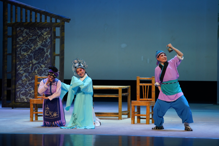 當(dāng)晚四出折子戲各有千秋?!堆篮塾?middot;金殿認(rèn)子》由梅花獎得主、國家級非物質(zhì)文化遺產(chǎn)代表性傳承人陳澄領(lǐng)銜,三代淮劇人同臺,一開腔便贏得滿堂彩。緊隨其后的《趕腳》,則讓觀眾看到了淮劇的青春面孔,三位“00后”演員擔(dān)綱主演,將一出輕喜劇演得靈動鮮活。“真沒想到,這么年輕的演員,能把傳統(tǒng)戲演得這么有味道。”北京觀眾李曉風(fēng)是第一次現(xiàn)場看淮劇,她是沖著淮劇“國家級非物質(zhì)文化遺產(chǎn)”這個招牌來的,“《趕腳》這出戲太有意思了,又好笑又好看。三個年輕人翻打滾踢,功夫扎實,表演也放得開。我看得直拍手。”她說,三個主演這么年輕就能站在國家大劇院的舞臺上,很不容易?;磩∮泻髣艃海?/p>