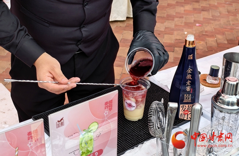 活動現(xiàn)場,各類互動體驗精彩紛呈。霓裳櫻影漢服秀與花神巡游成為流動風景線;DIY調(diào)酒區(qū)人氣高漲,游客親手調(diào)制櫻花主題金徽特調(diào);非遺工藝展示臺前,傳承人現(xiàn)場演示古法工序,讓觀眾觸摸“指尖上的匠心”;金徽文創(chuàng)展銷區(qū)人頭攢動,特色衍生品備受青睞。